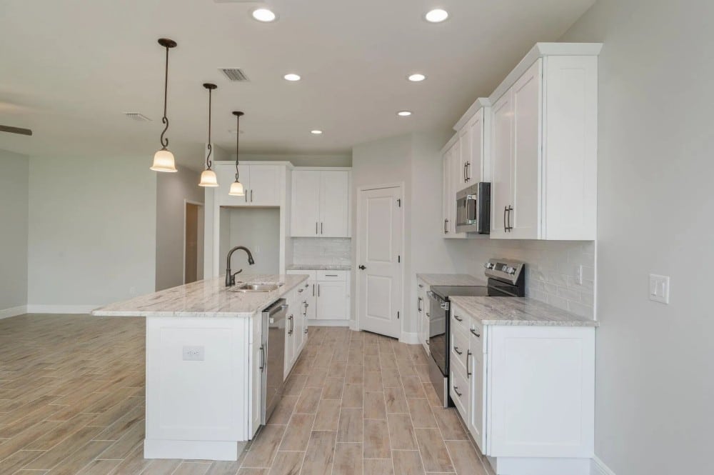 Welcome home to this lovely 3 bedroom 2 bath home offering 9ft ceilings throughout, a spacious living room and kitchen perfect for entertaining family and guest. The kitchen has beautiful white kitchen cabinetry, granite countertops, and a spacious walk-in pantry with plenty of storage. Step outside to the inviting back porch to enjoy the outdoors. For added privacy, the backyard is fully fenced. This home is conveniently located to shopping, restaurants, and the beautifully white sandy beaches. Make the brand new home yours today. Buyer to verify all areas of importance to include measurements, lot size.